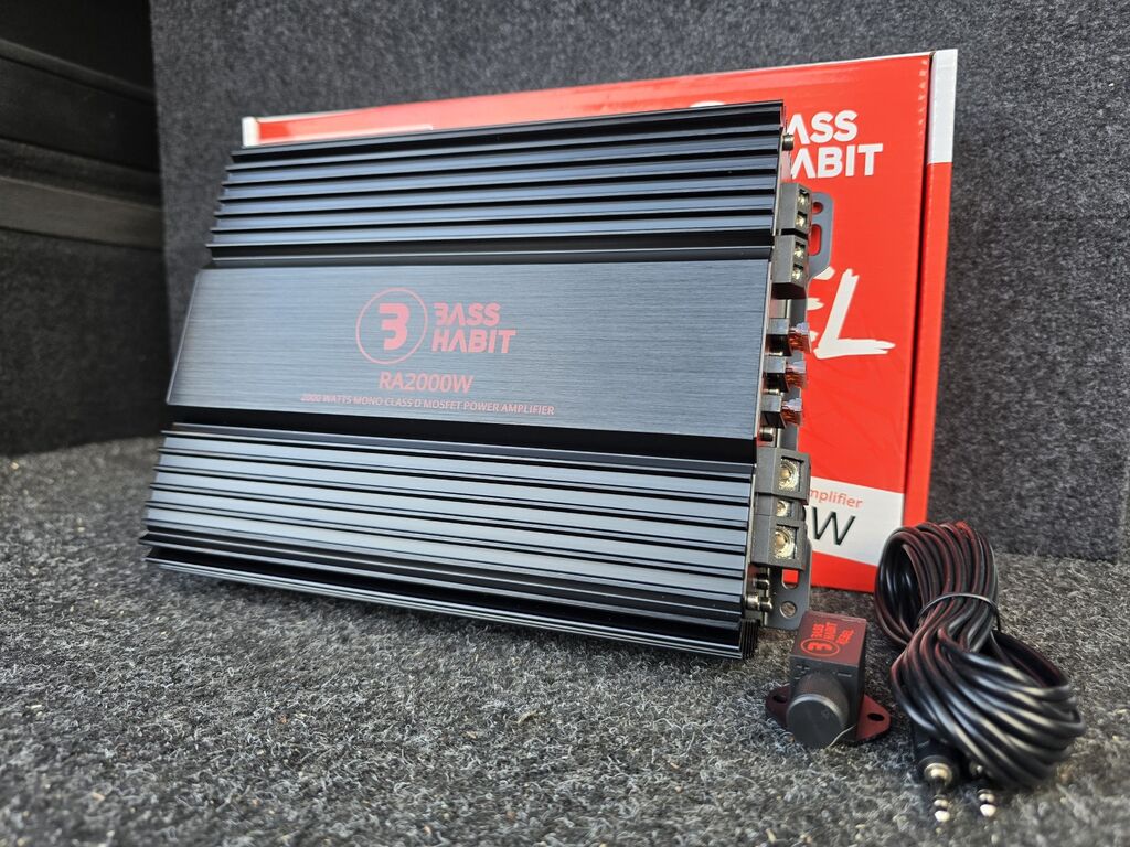 Võimendi: BassHabit RA2000W. 1000W RMS @ 1 ohm. Remote pult kaasas.