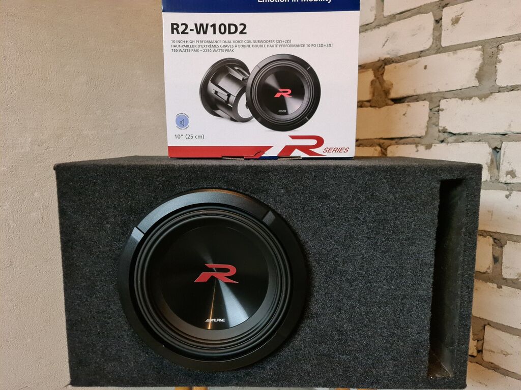 Element: Alpine R2-W10D2 10″ 2250W max 750W RMS. 26-200hz. 2+2ohm, ühendatud 1 ohm peale.