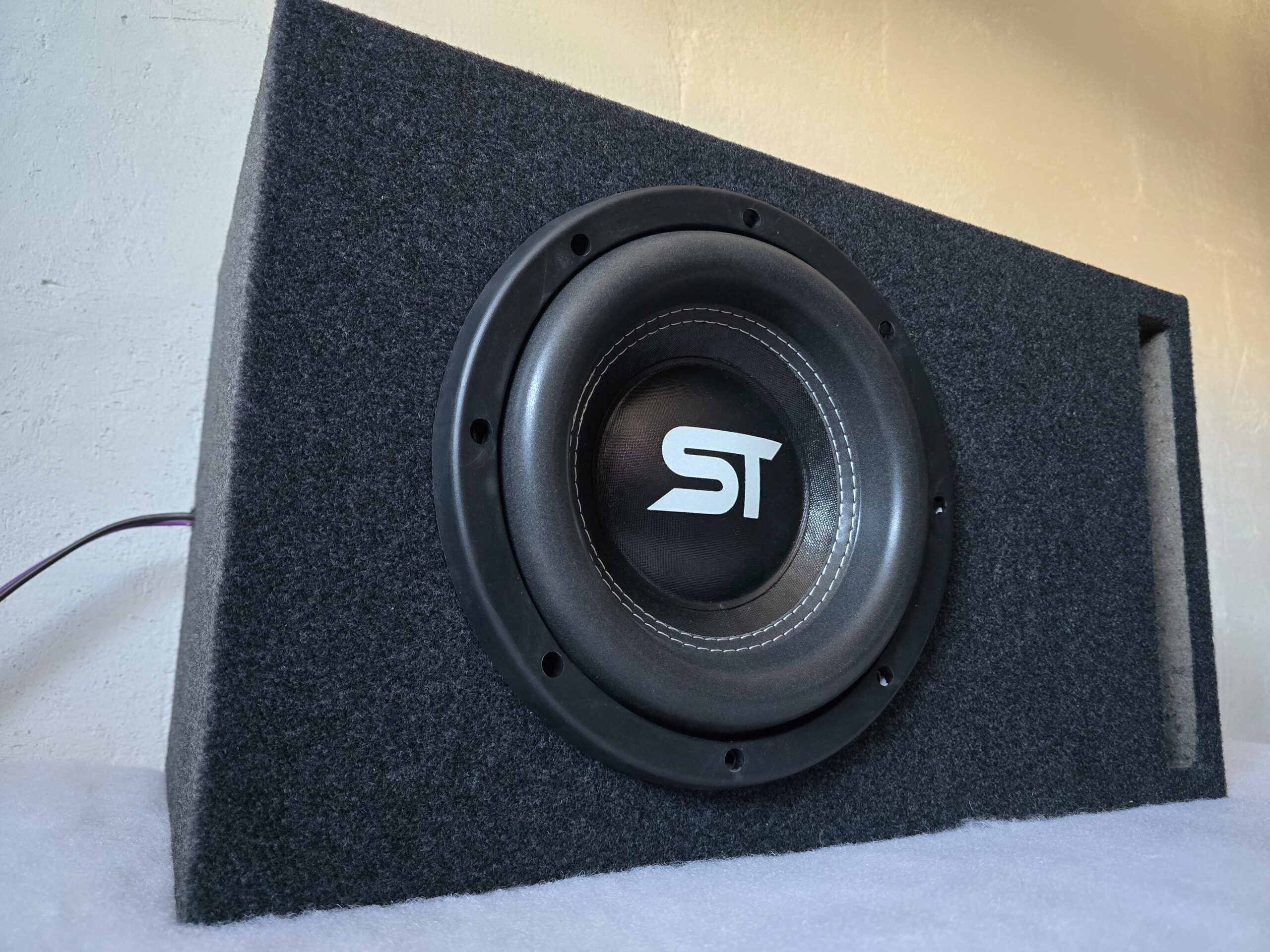 : ST Audio 10″ 1200W max 600W RMS, 2+2 ohm, 50-500hz. Ühendatud 1 ohm peale. Mähis 3″ (75mm)