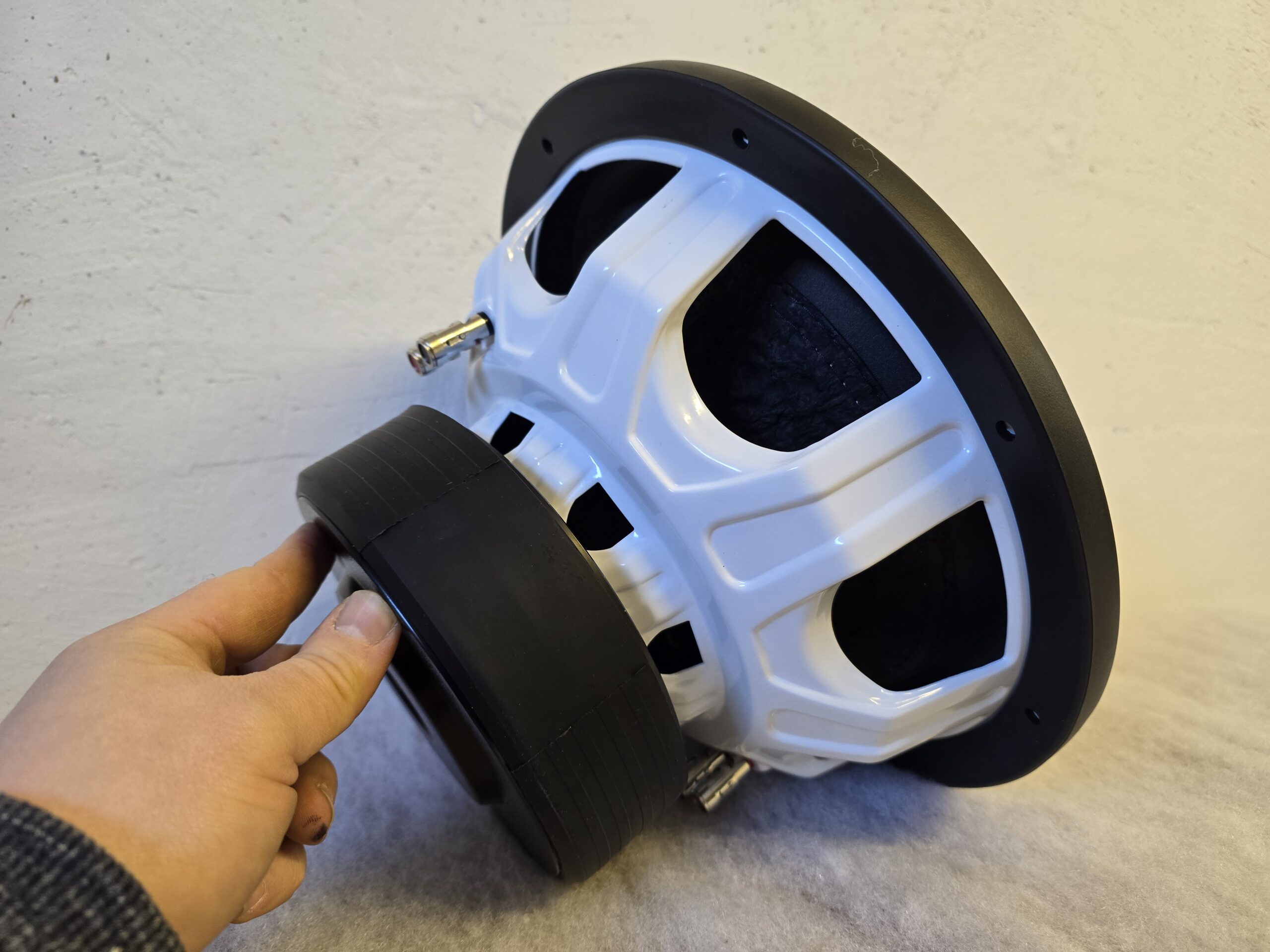 : ST Audio 12″ 1600W max 800W RMS, 2+2 ohm, 40-500hz. Ühendatud 1 ohm peale. Mähis 3″ (75mm)