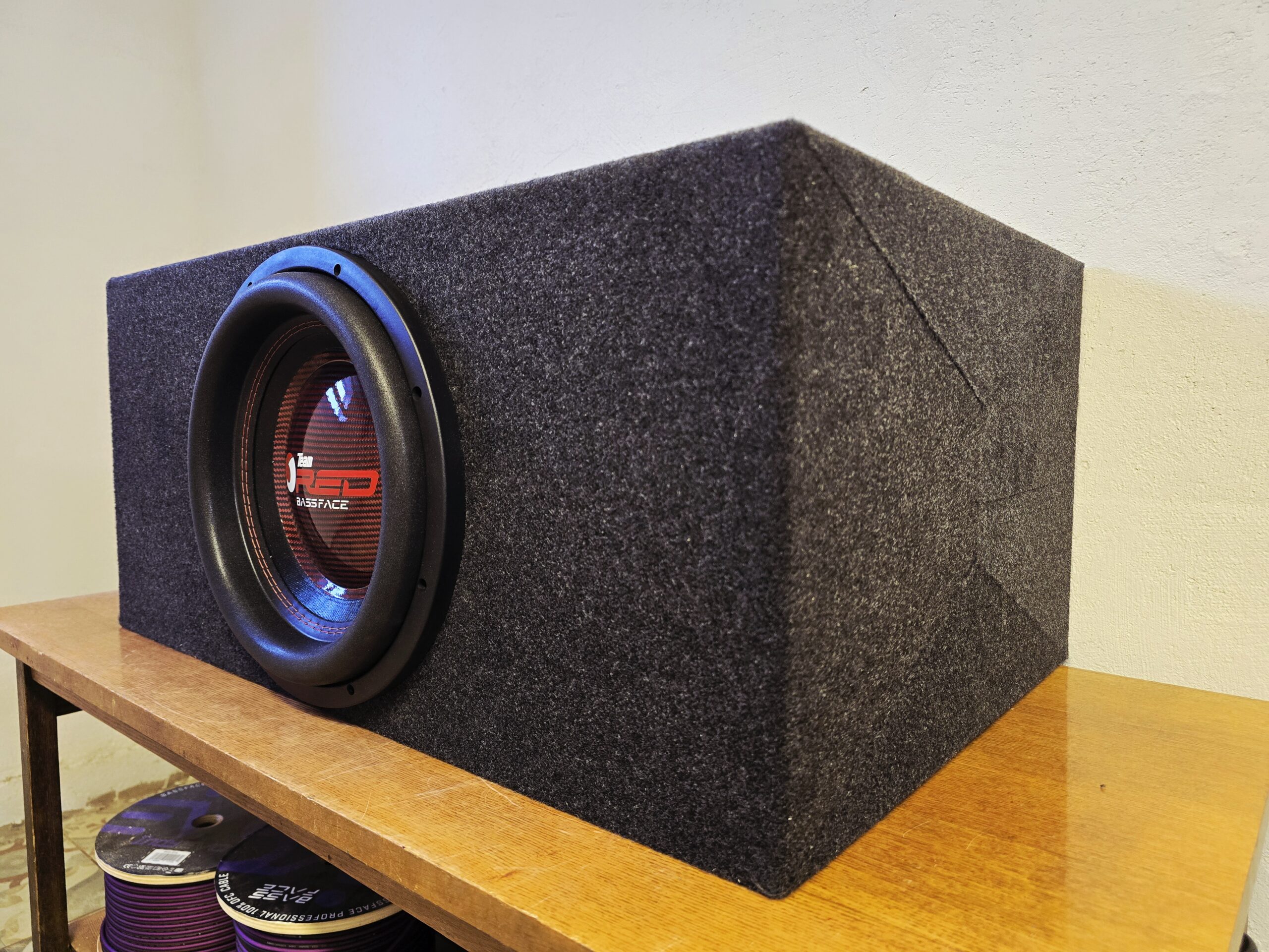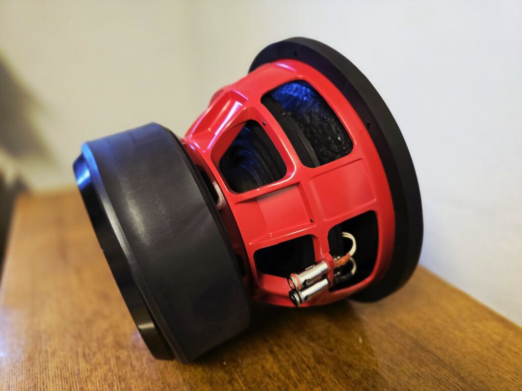: BF Team RED 12 12″ 7000W Max 3500W RMS 2+2ohm. Ühendatud 1 ohm peale.